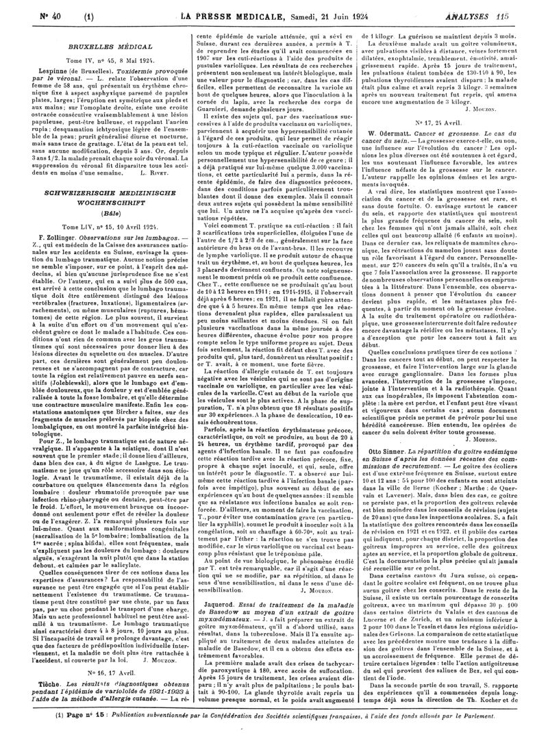 1924, Revue des journaux. -