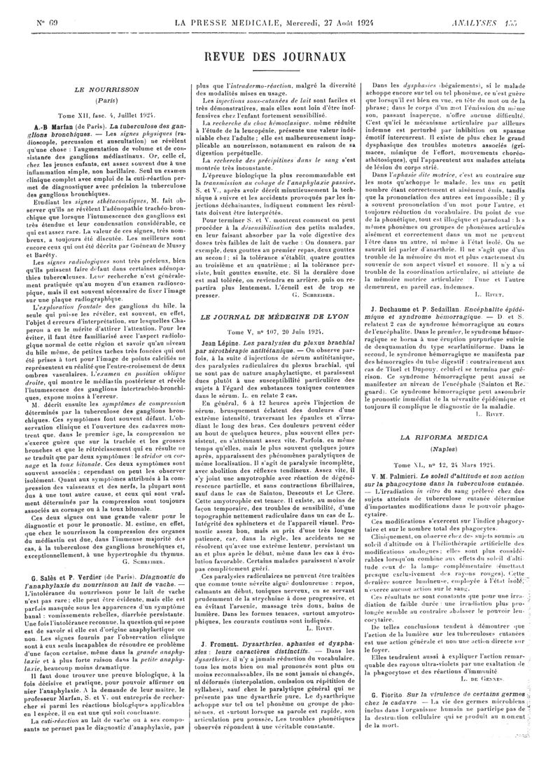 1924, Revue des journaux. -
