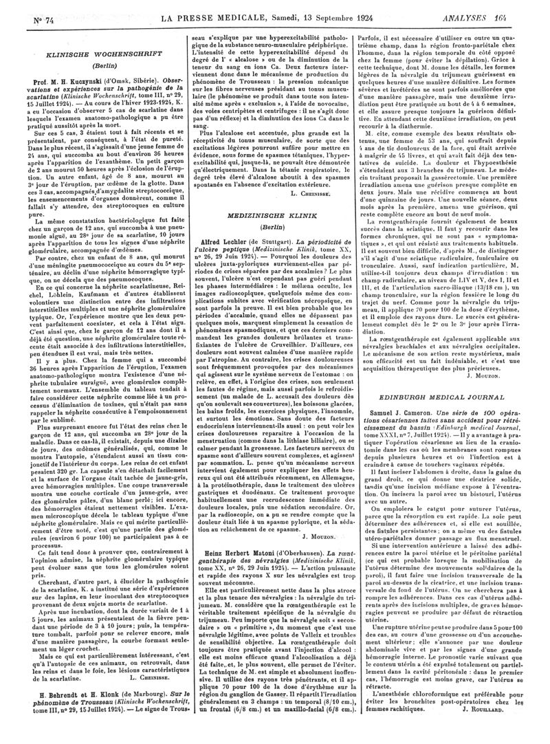 1924, Revue des journaux. -