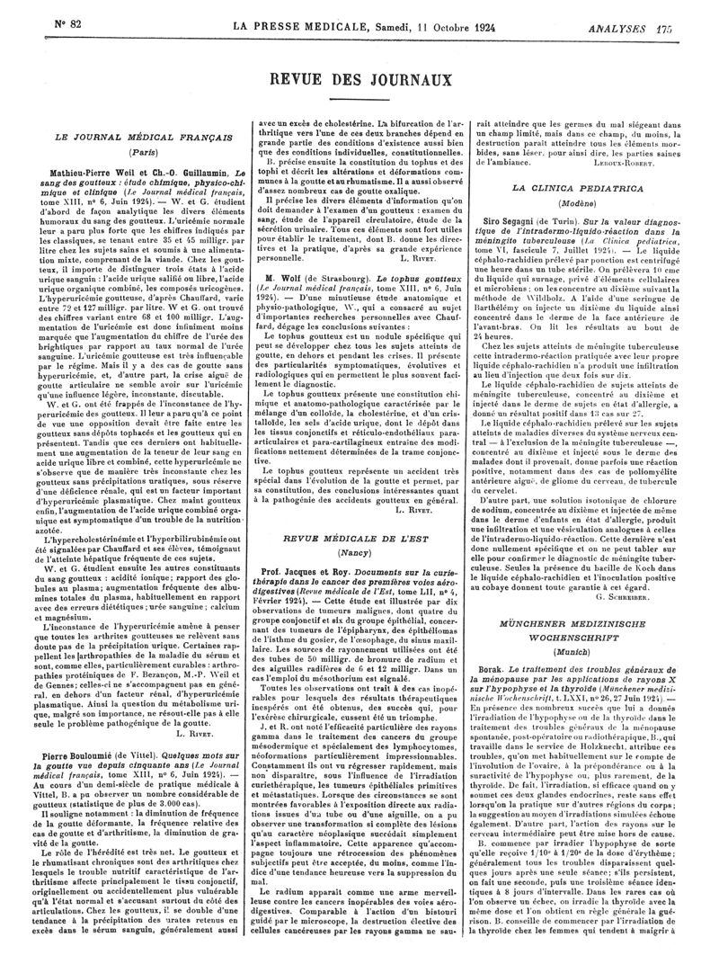 1924, Revue des journaux. -
