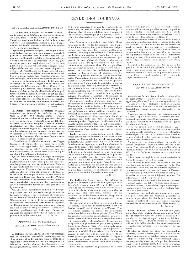 1924, Revue des journaux. -