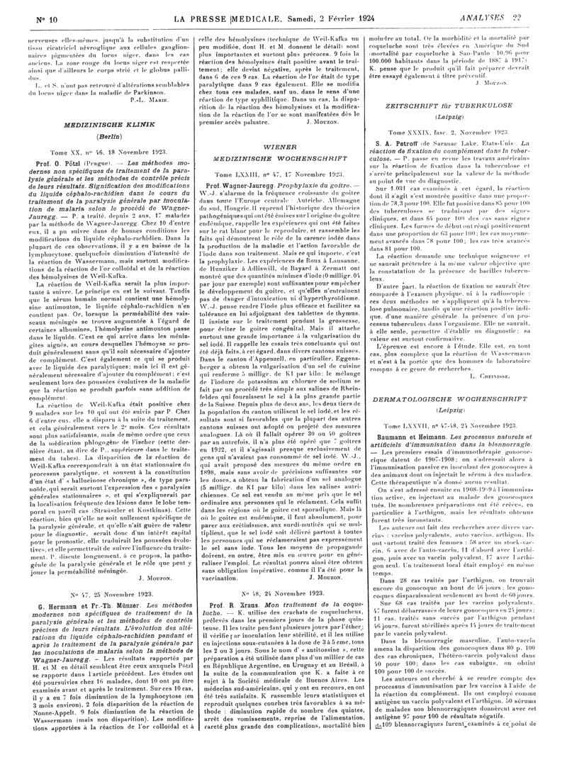 1924, Revue des journaux. -