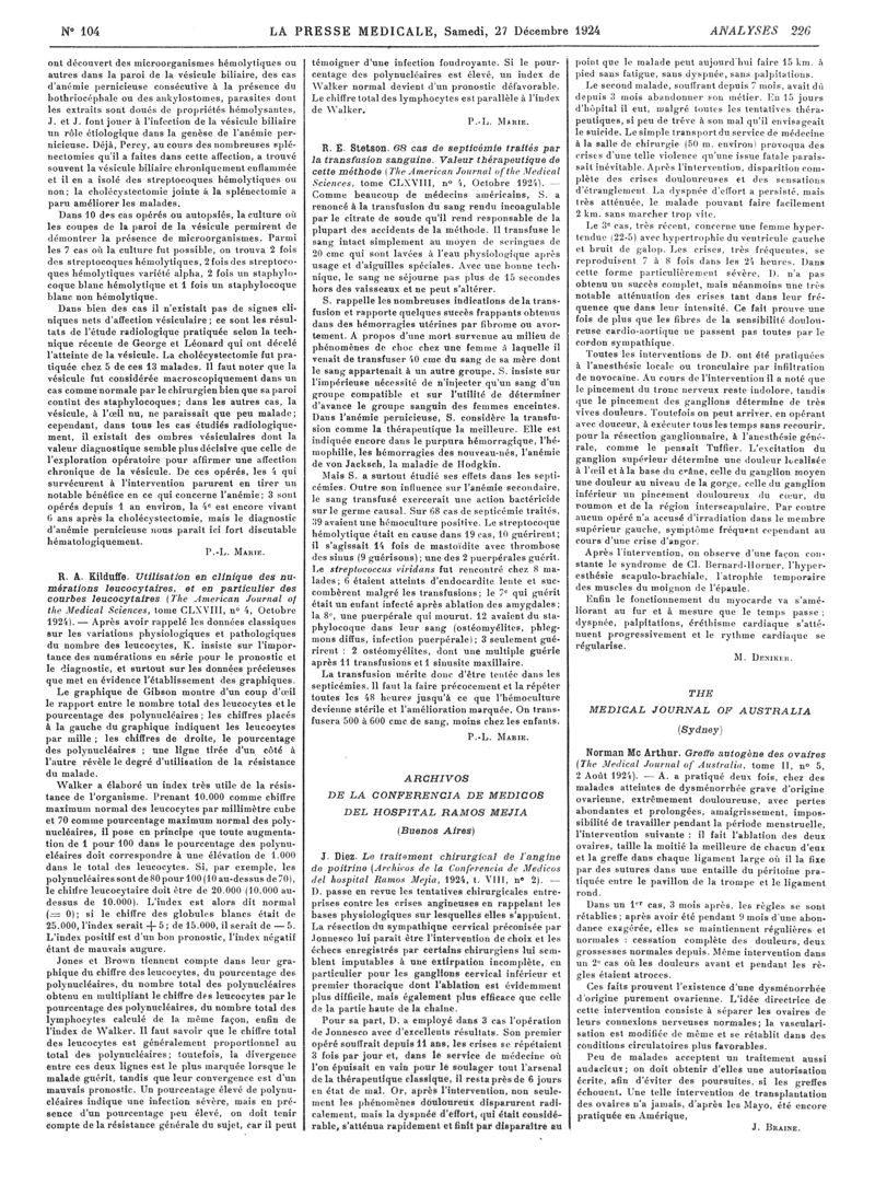 1924, Revue des journaux. -