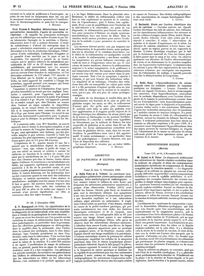 1924, Revue des journaux. -