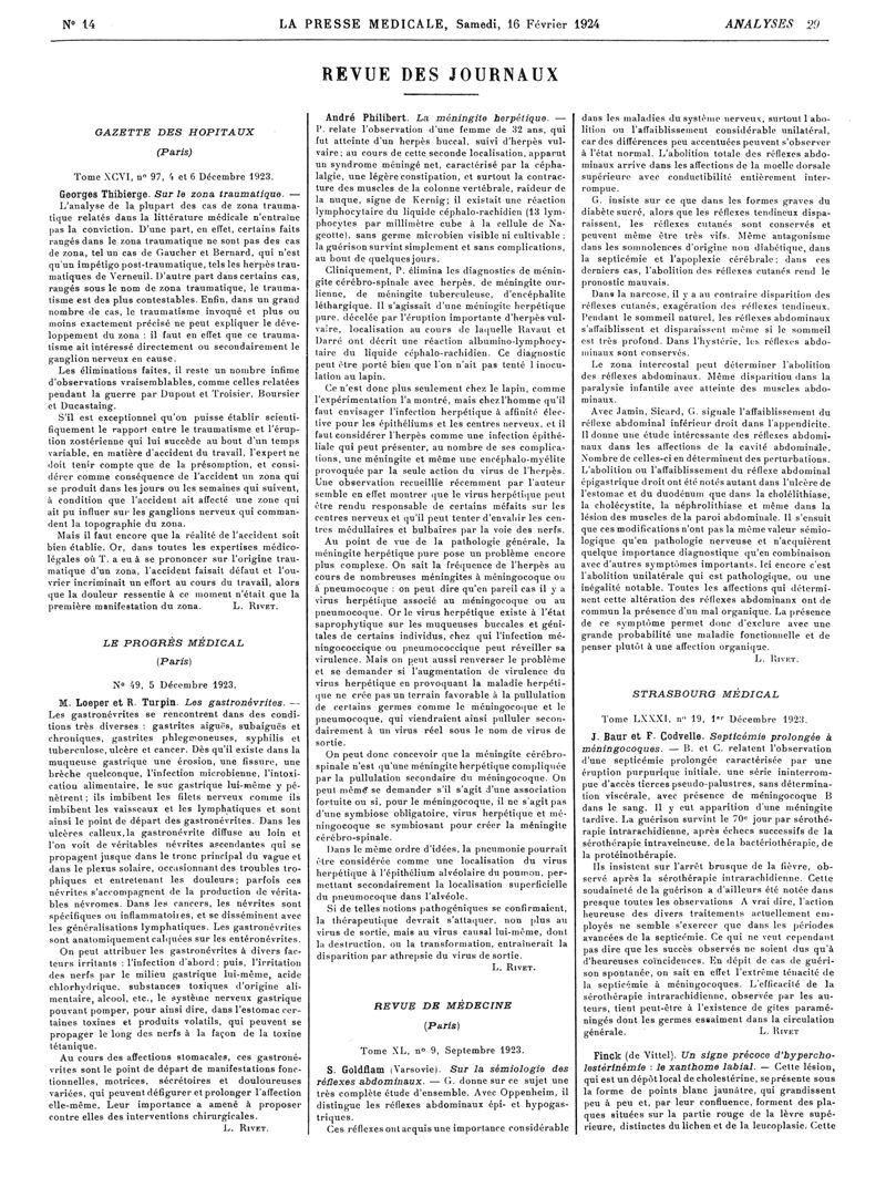 1924, Revue des journaux. -
