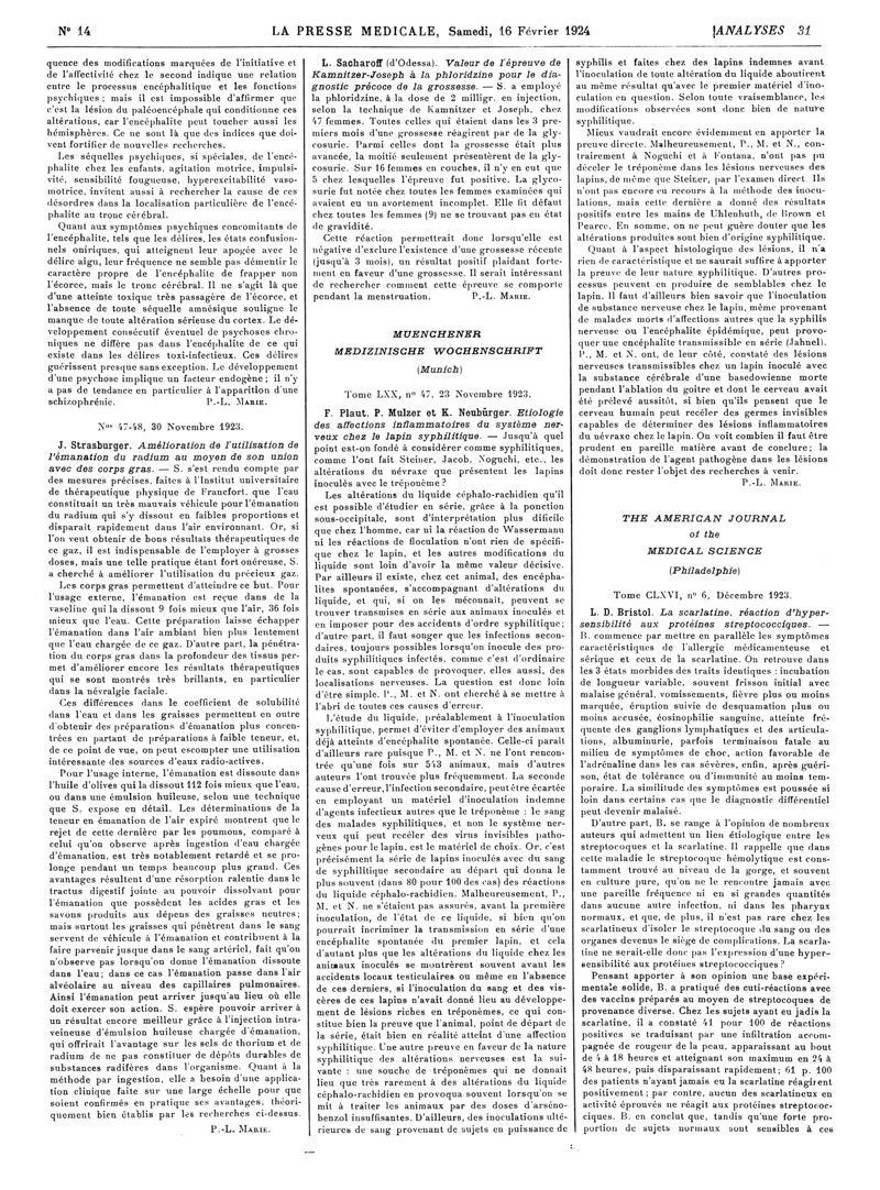 1924, Revue des journaux. -