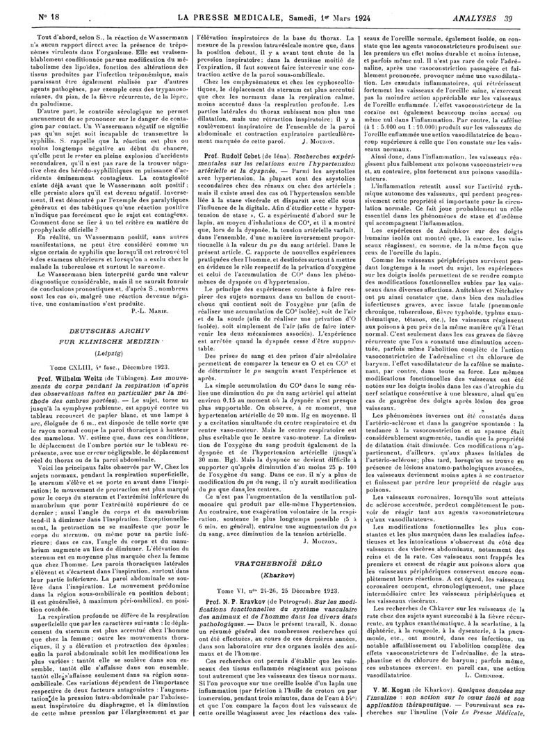 1924, Revue des journaux. -