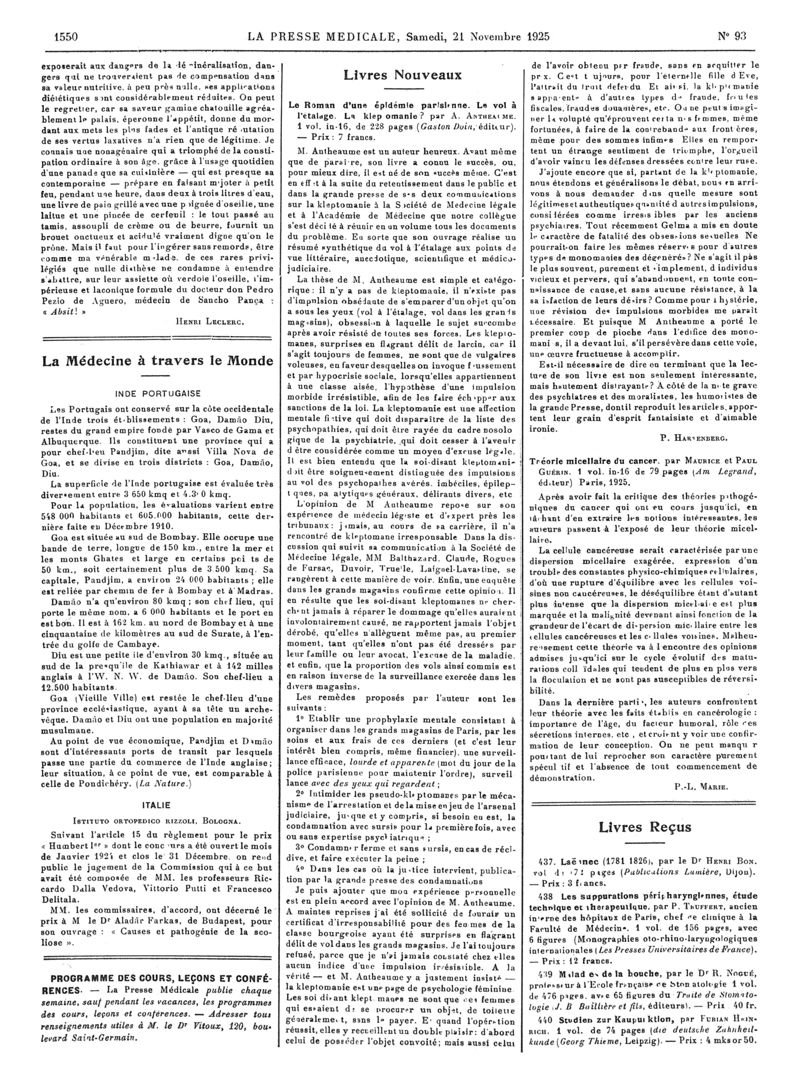 1925, Articles originaux. -