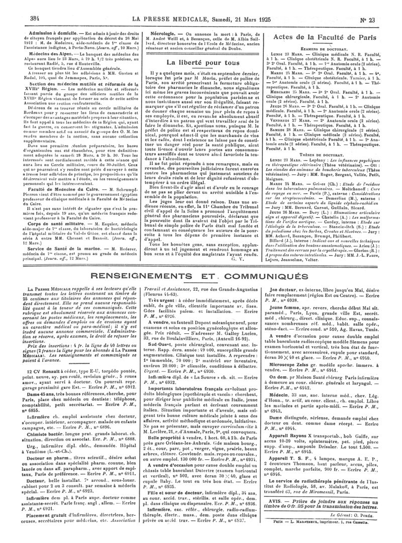 1925, Articles originaux. -