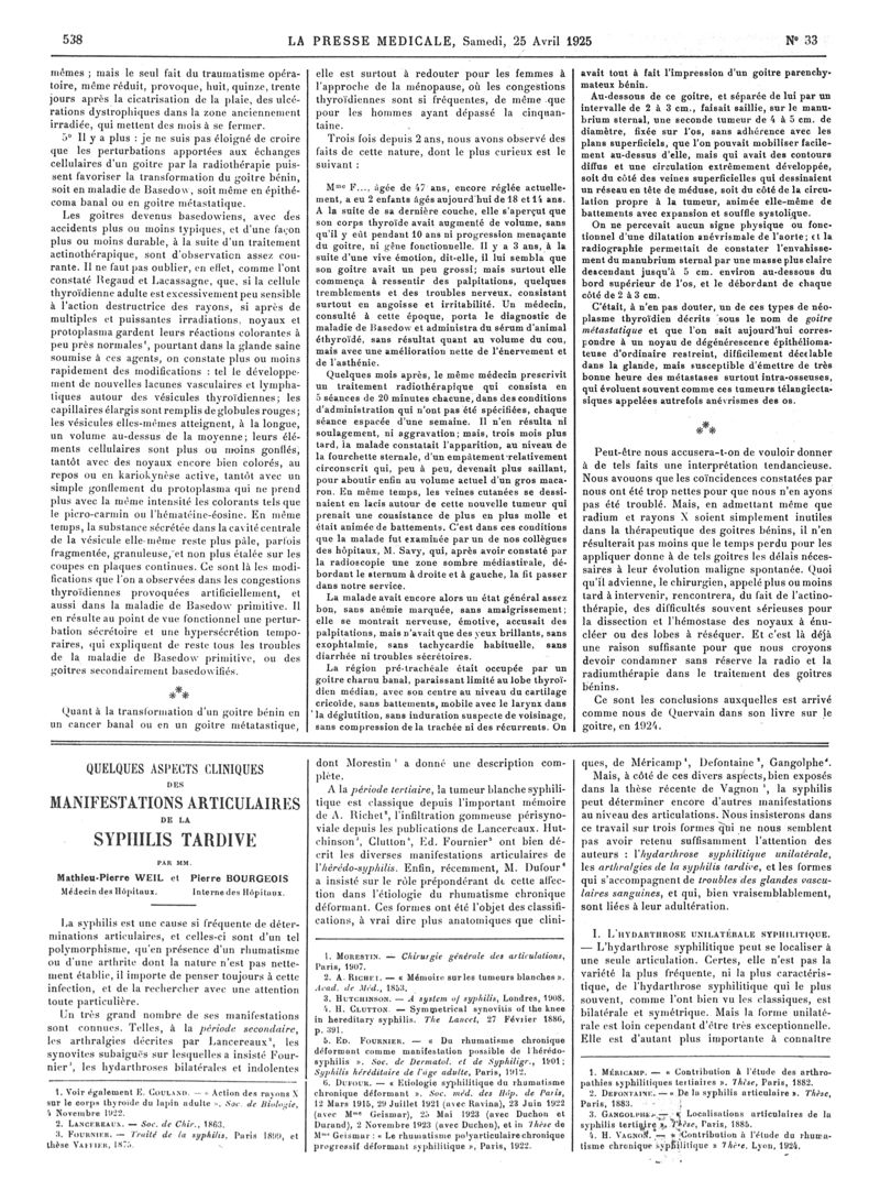 1925, Articles originaux. -
