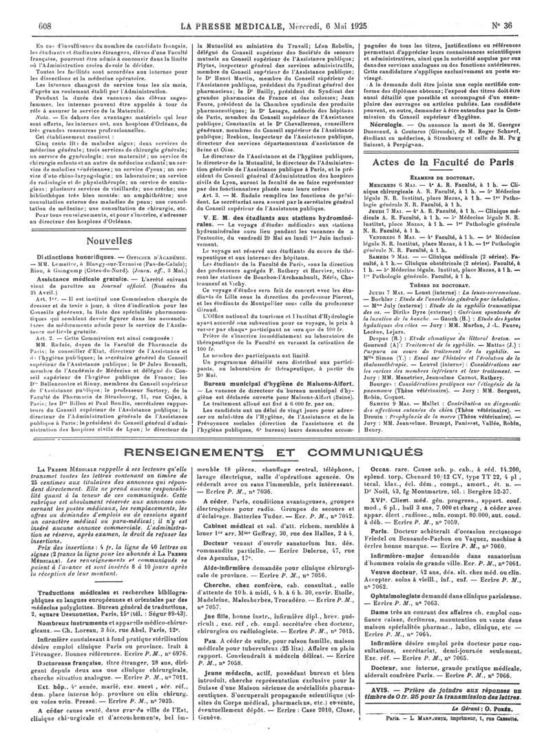 1925, Articles originaux. -