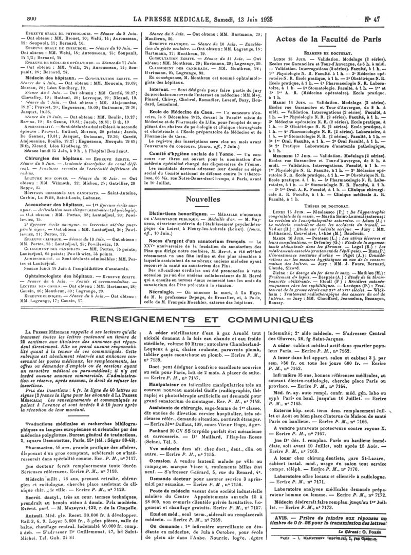 1925, Articles originaux. -