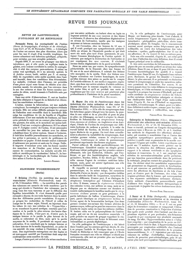 1925, Revue des journaux. -