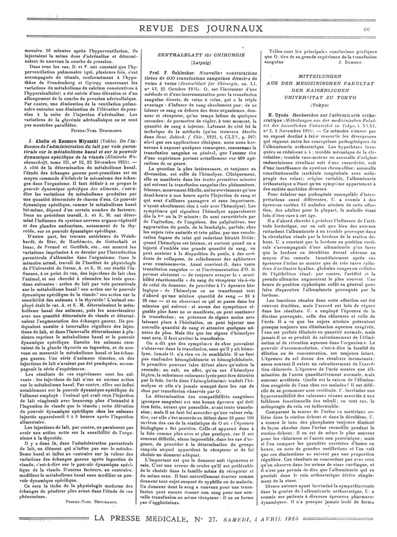 1925, Revue des journaux. -