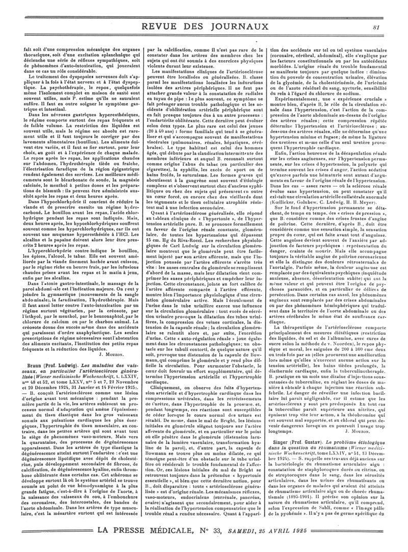 1925, Revue des journaux. -