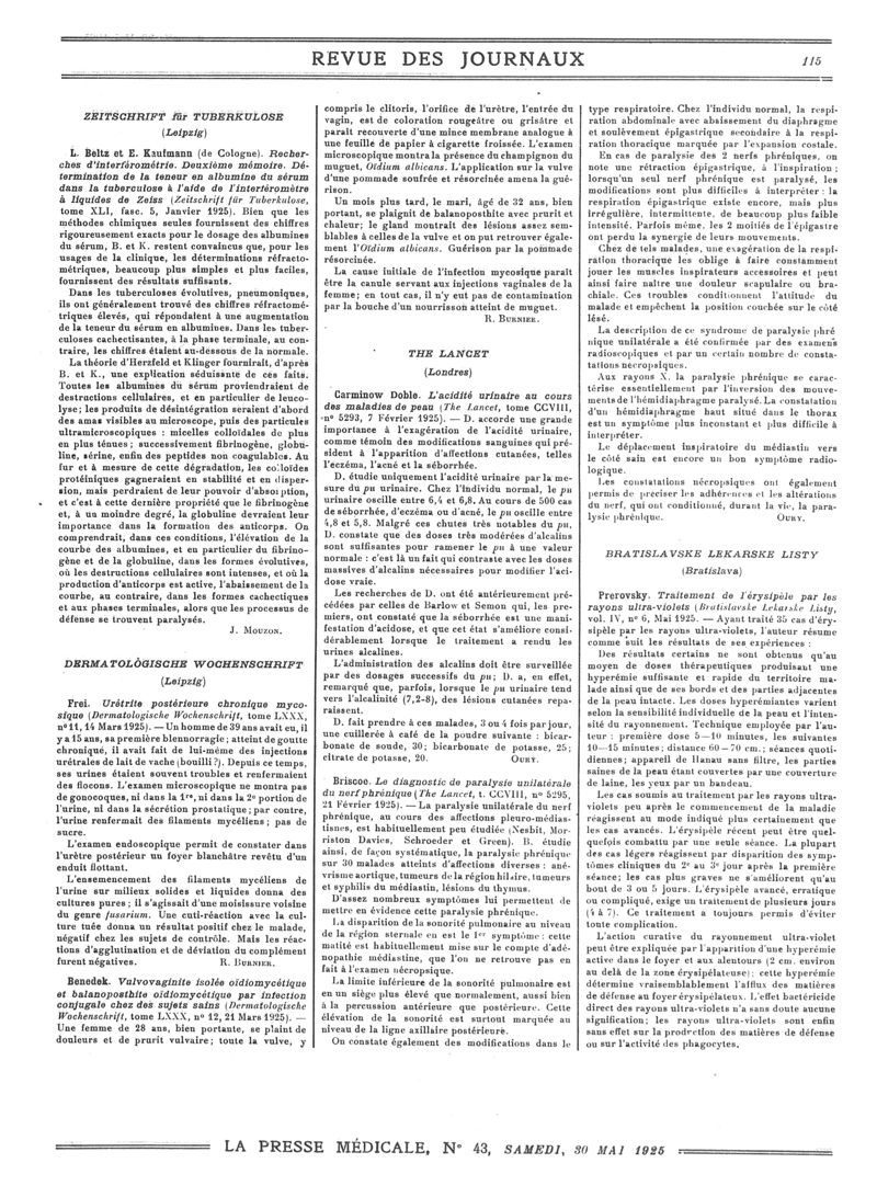 1925, Revue des journaux. -