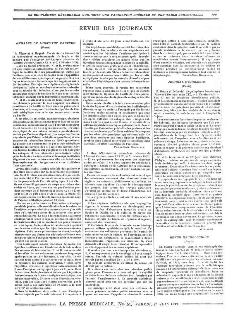 1925, Revue des journaux. -