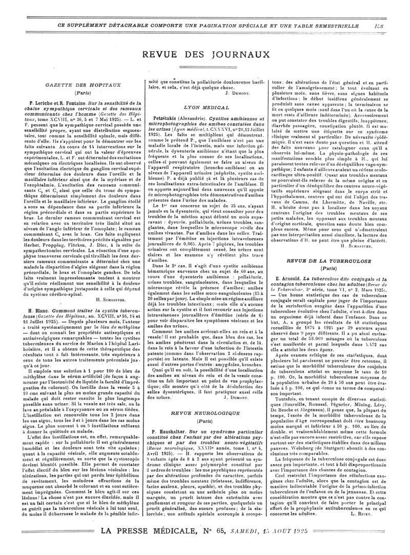 1925, Revue des journaux. -