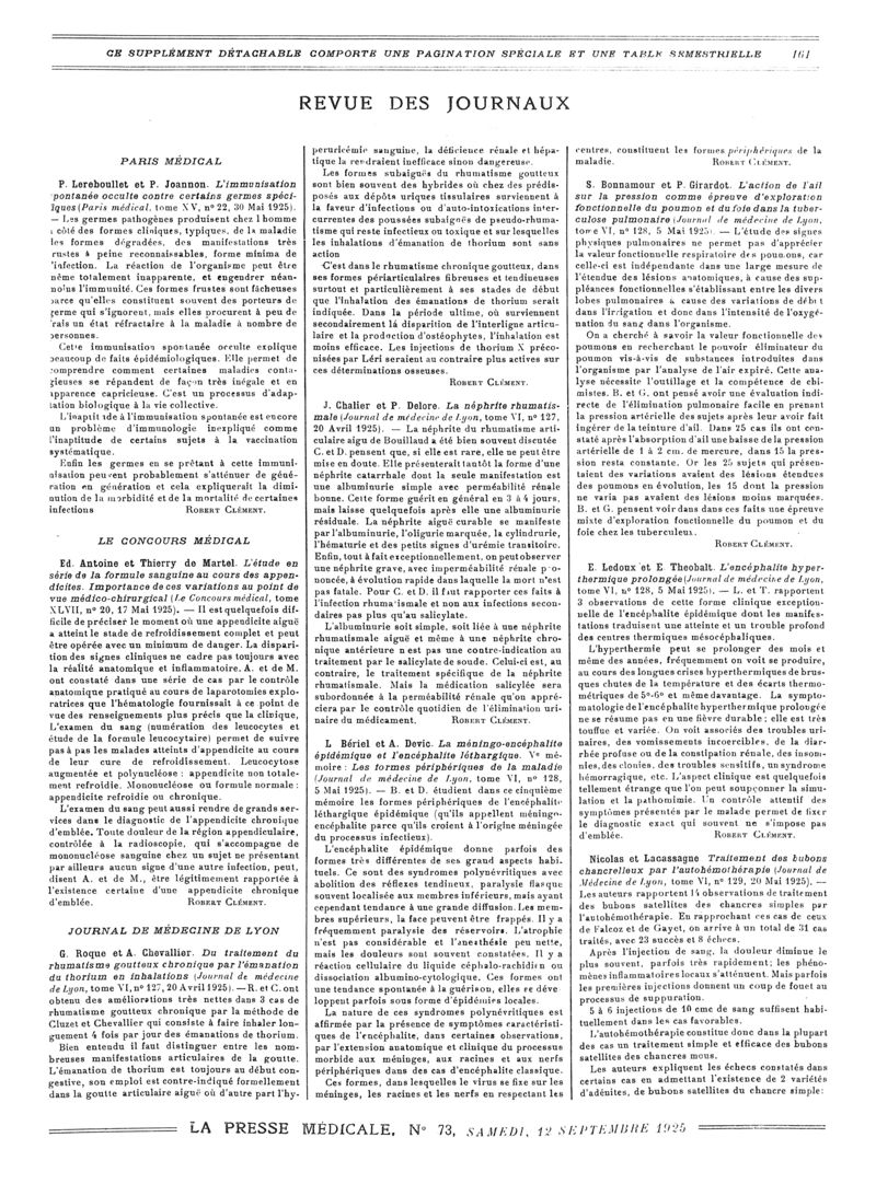 1925, Revue des journaux. -