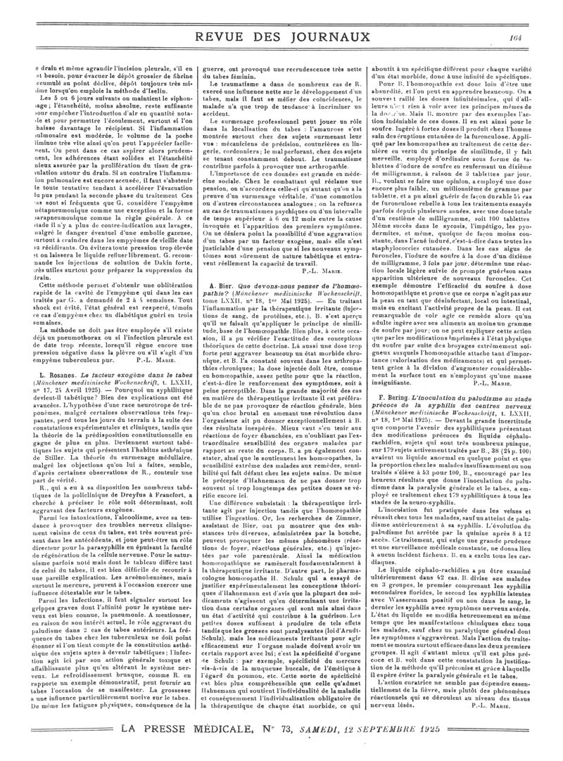 1925, Revue des journaux. -