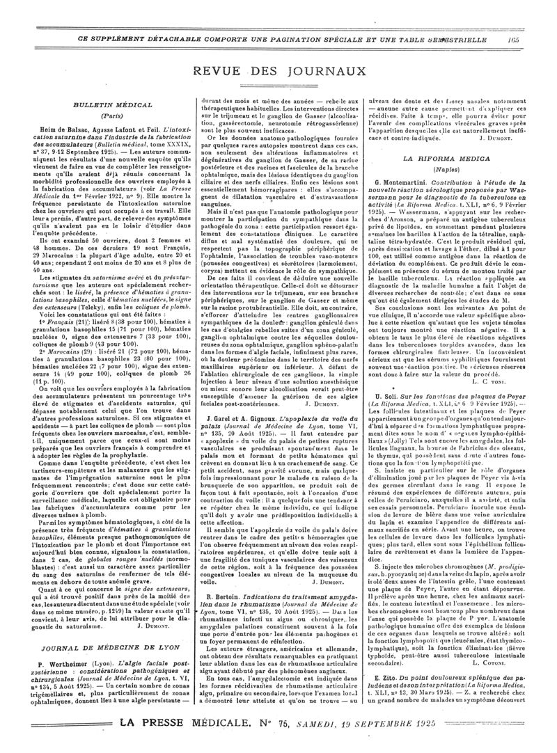 1925, Revue des journaux. -