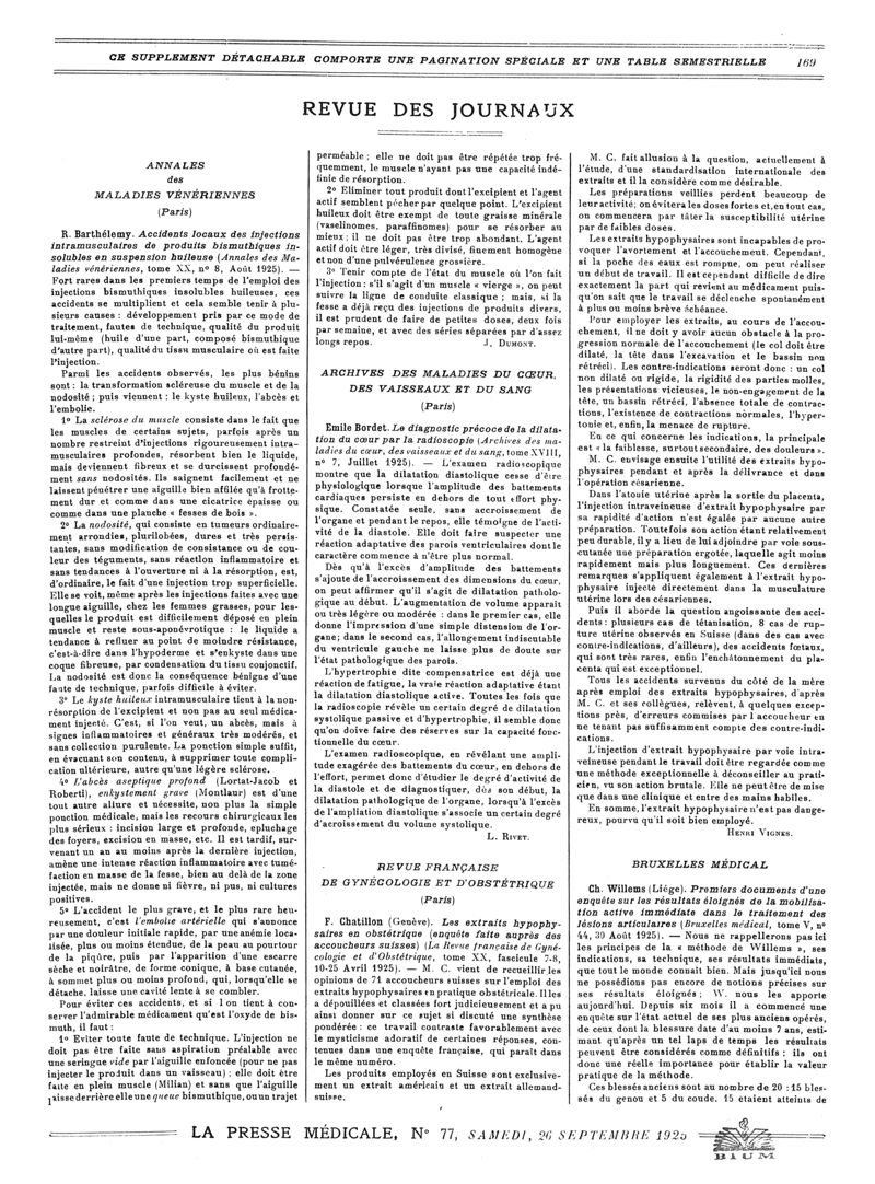 1925, Revue des journaux. -