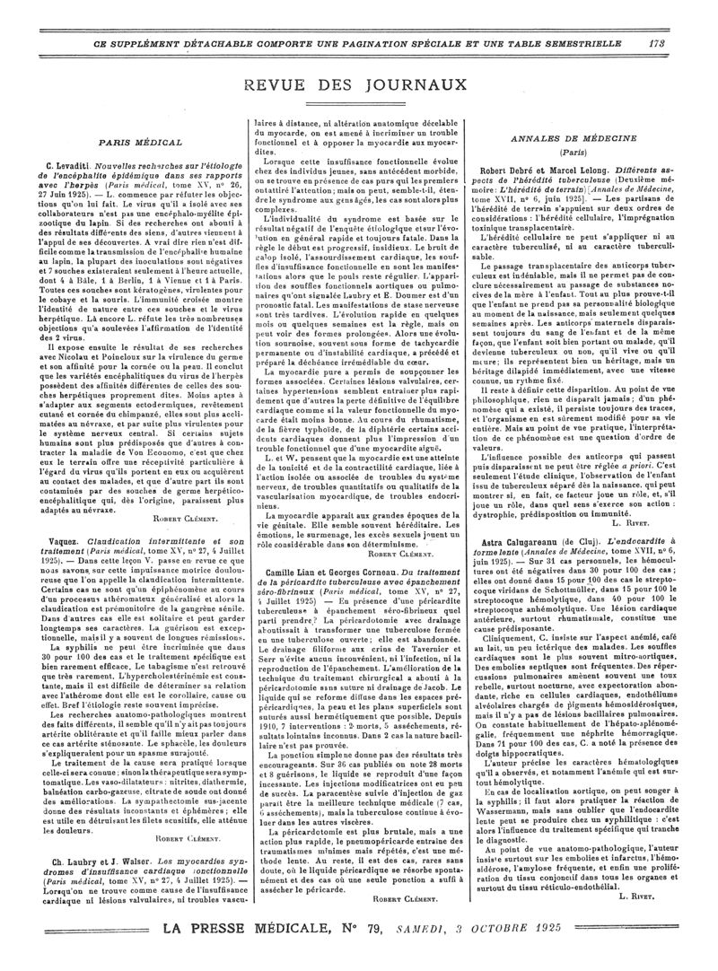 1925, Revue des journaux. -