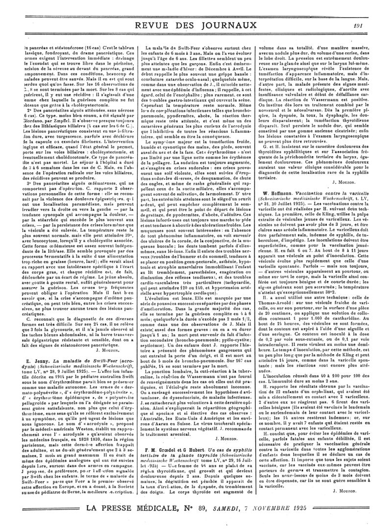 1925, Revue des journaux. -