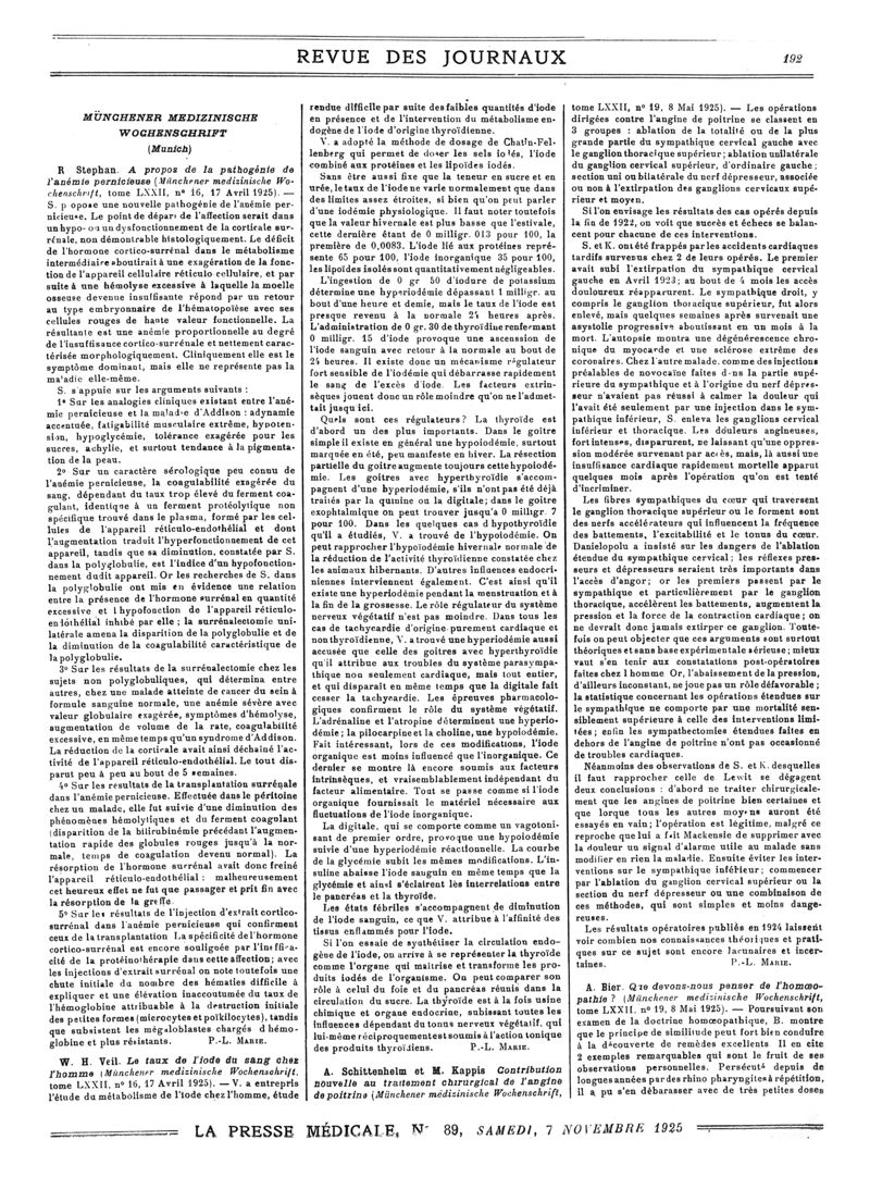 1925, Revue des journaux. -