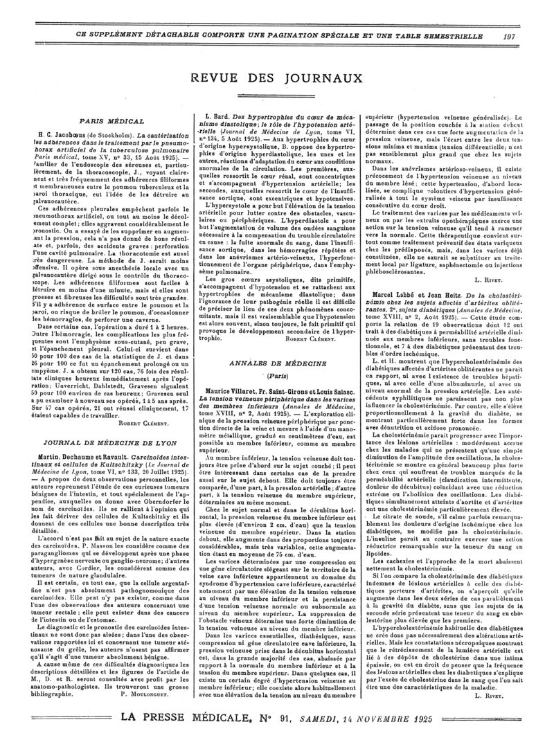 1925, Revue des journaux. -