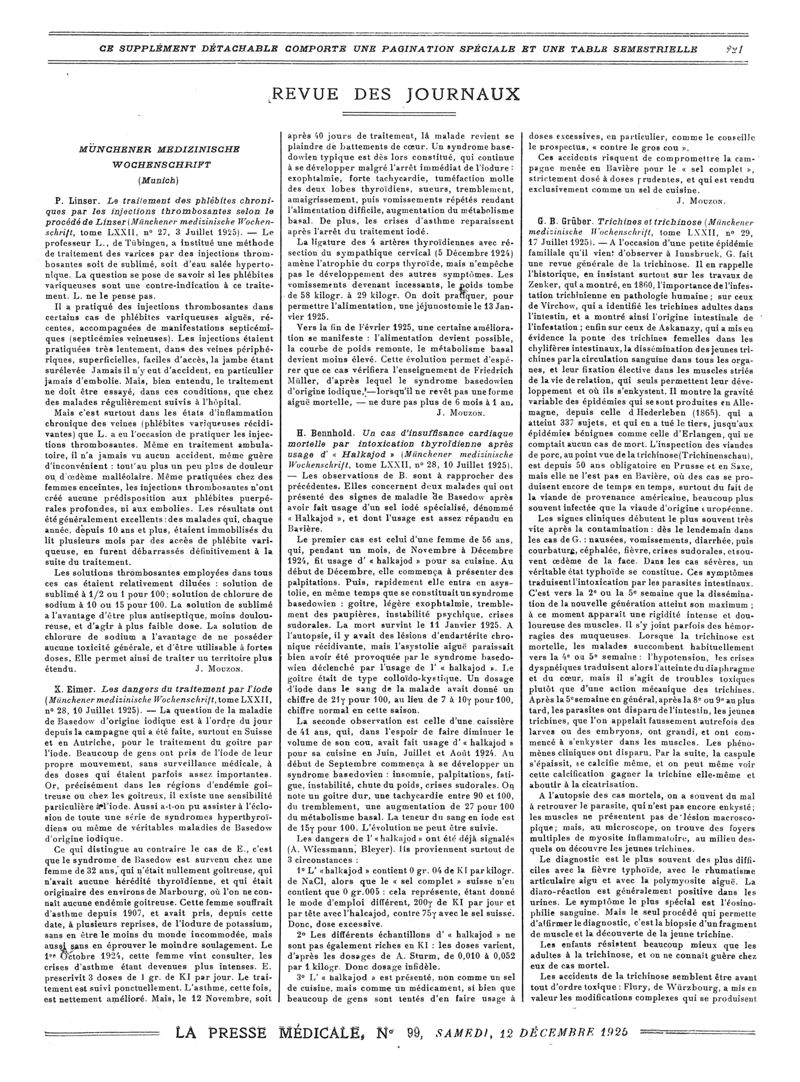 1925, Revue des journaux. -