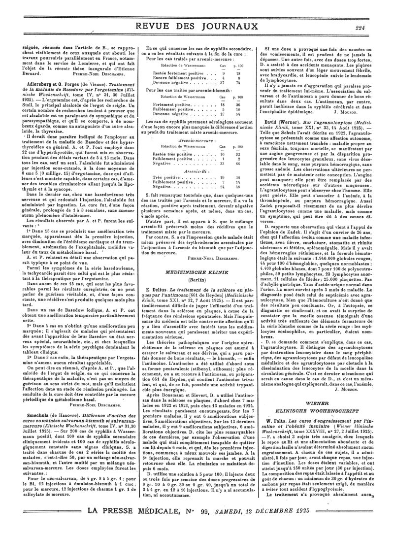 1925, Revue des journaux. -