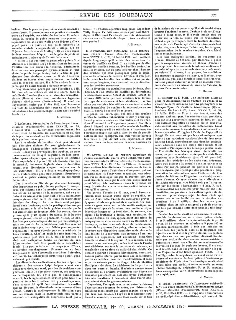 1925, Revue des journaux. -