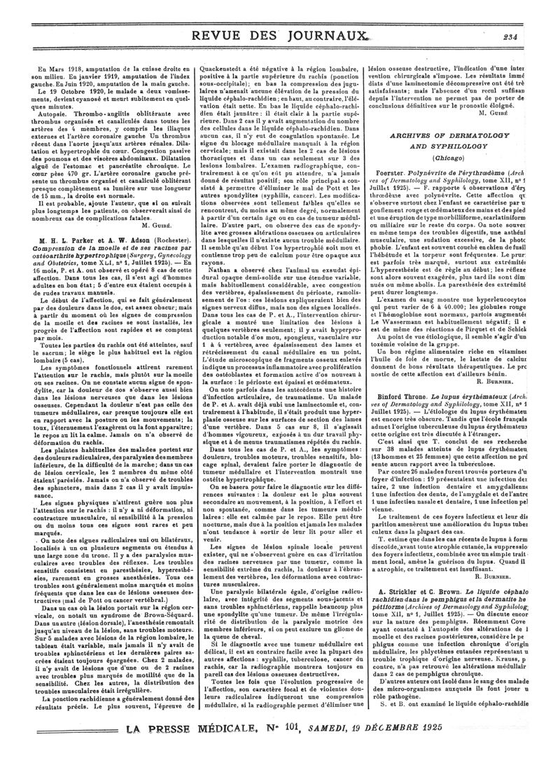 1925, Revue des journaux. -