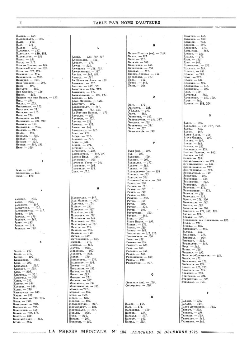 1925, Volume de tables. -