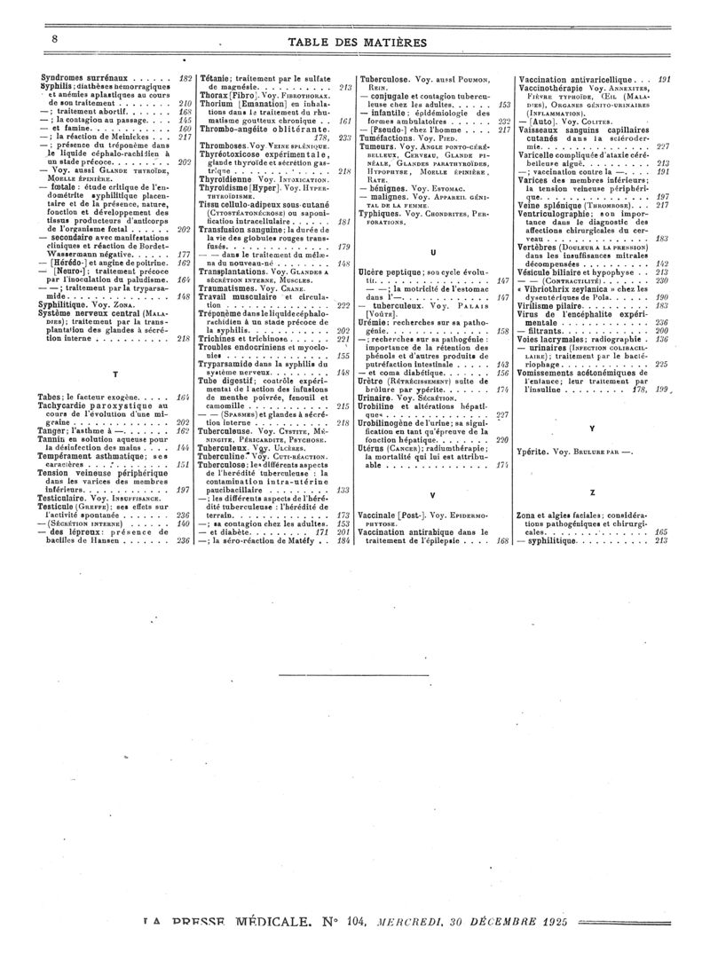 1925, Volume de tables. -