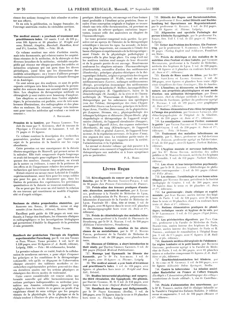 1926, Articles originaux. -