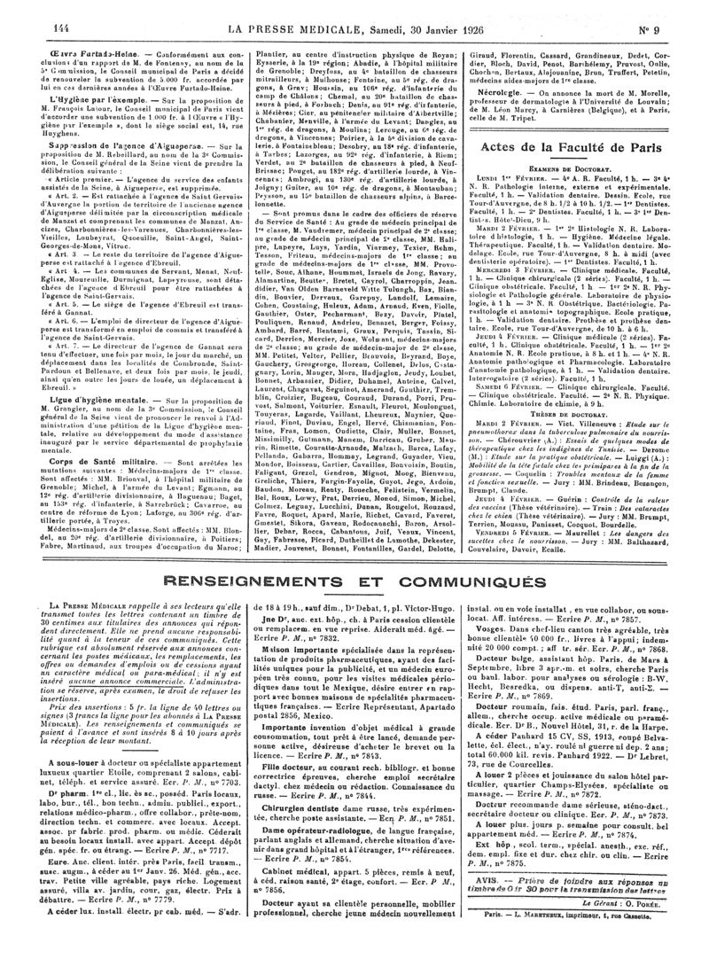 1926, Articles originaux. -