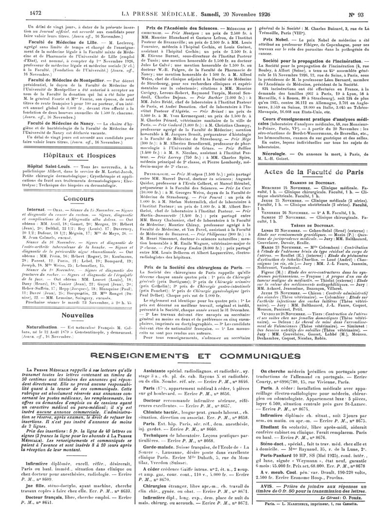 1926, Articles originaux. -