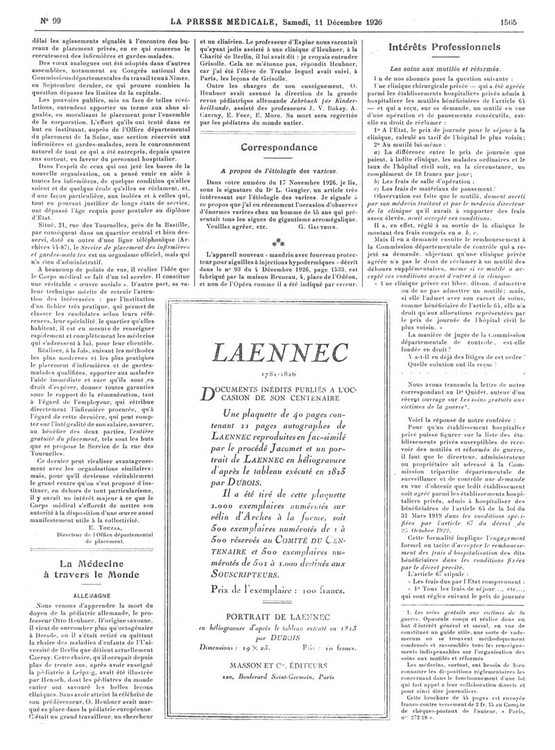 1926, Articles originaux. -