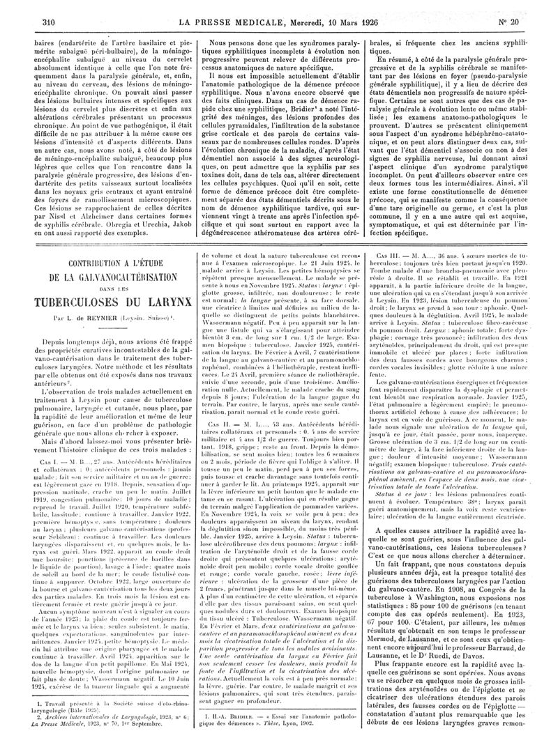 1926, Articles originaux. -