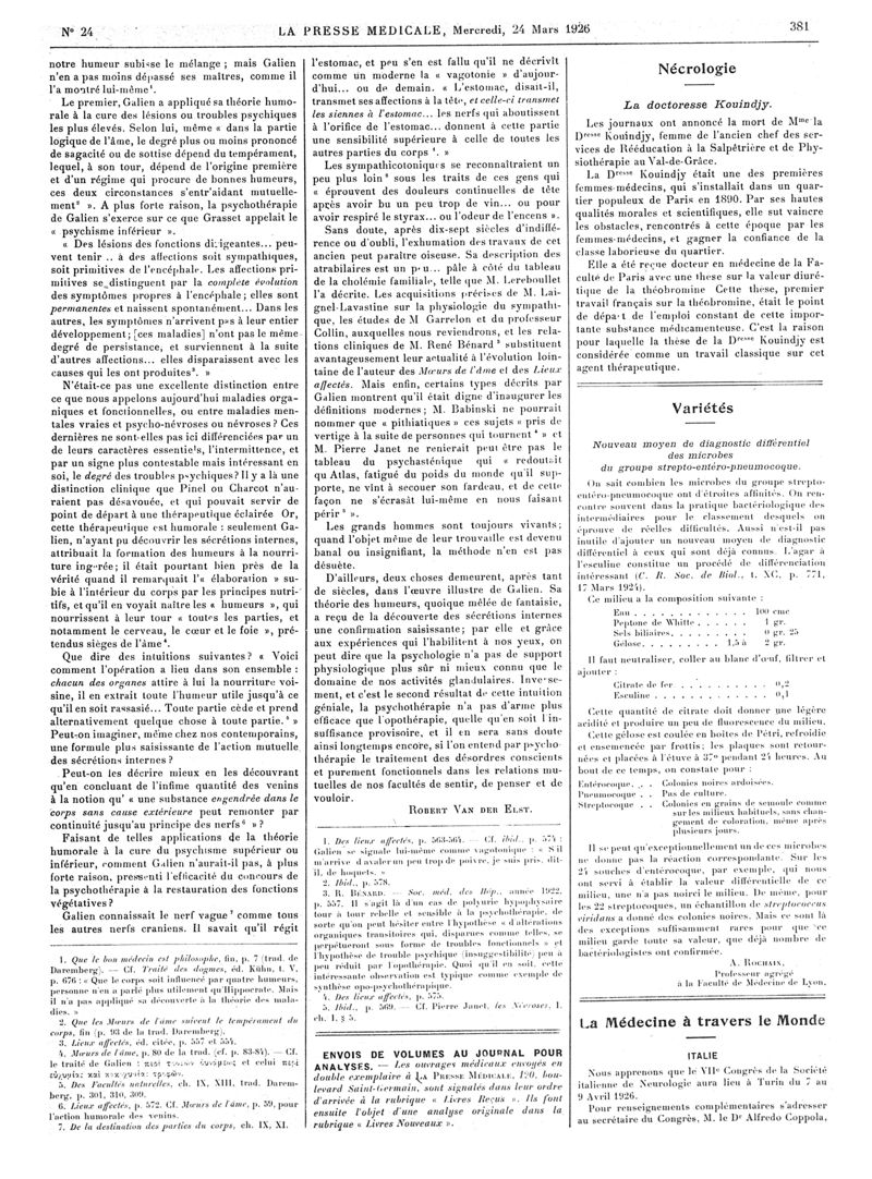 1926, Articles originaux. -