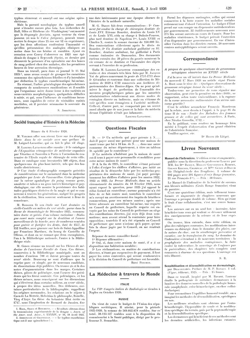 1926, Articles originaux. -