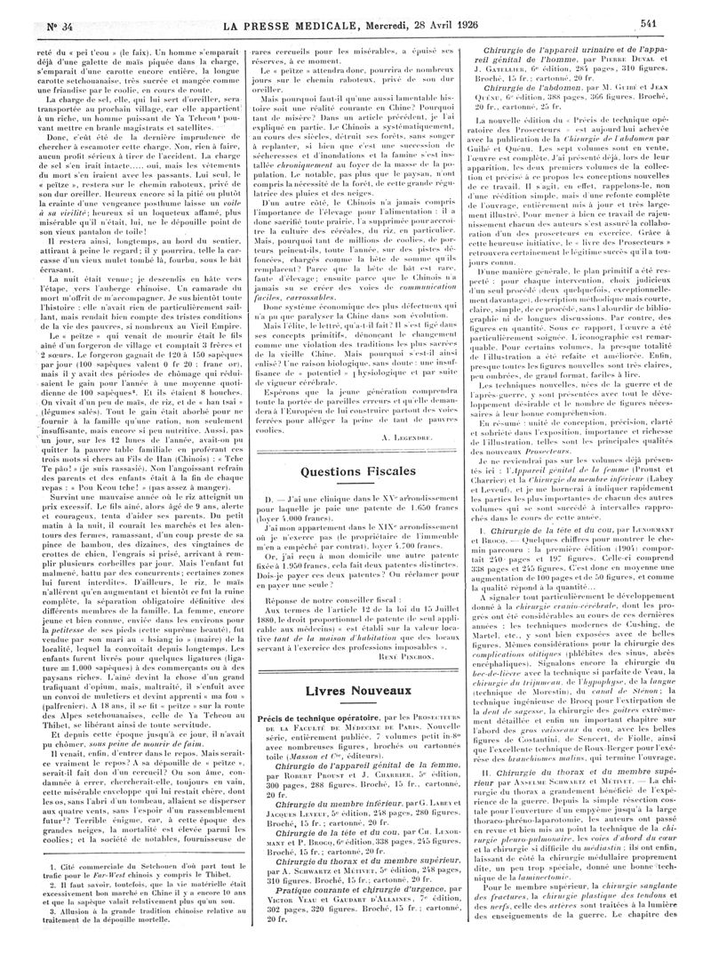 1926, Articles originaux. -
