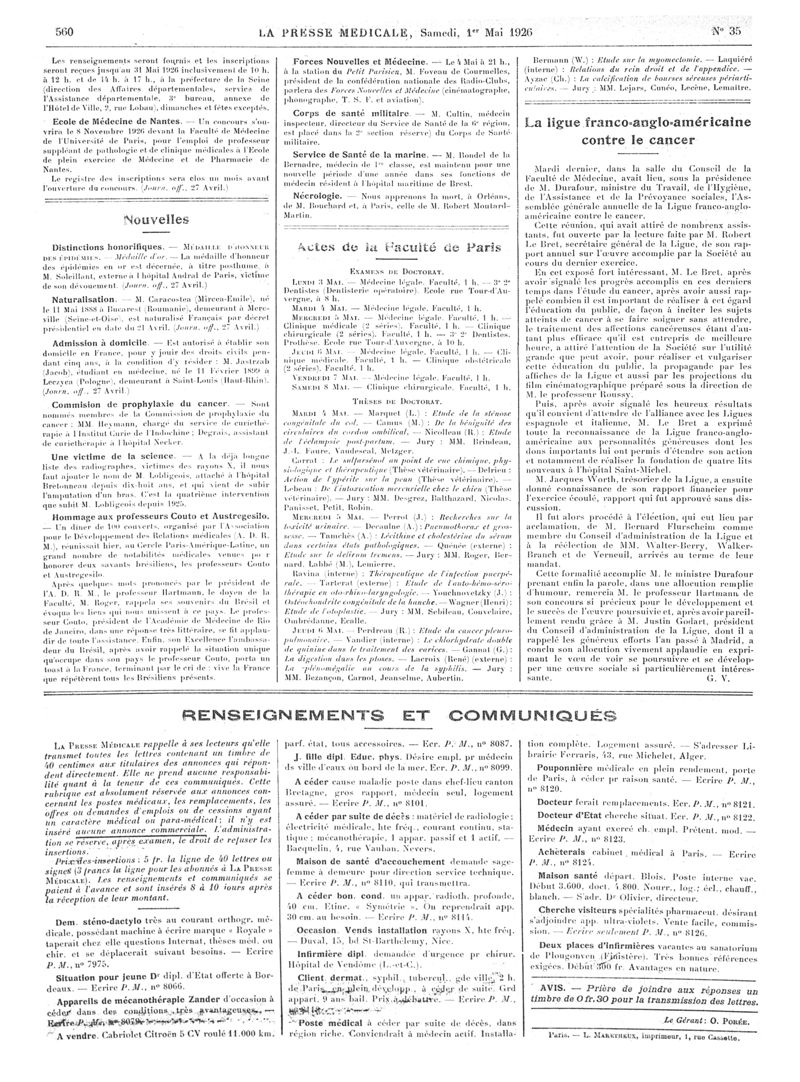 1926, Articles originaux. -