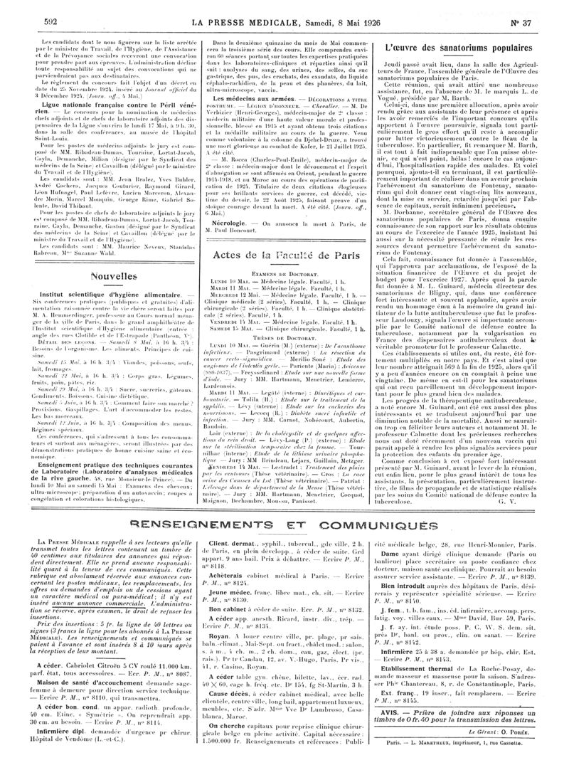 1926, Articles originaux. -