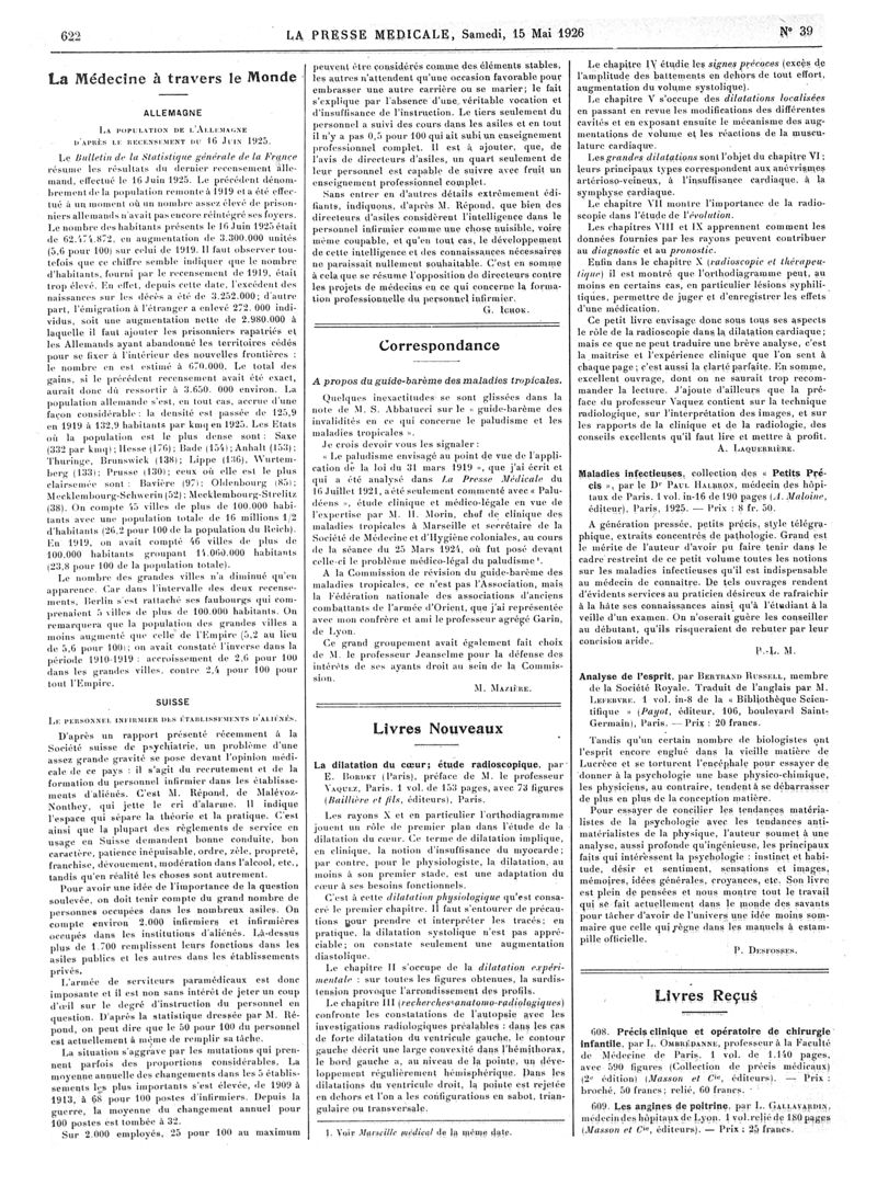 1926, Articles originaux. -
