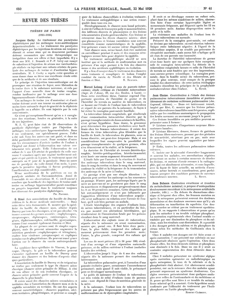 1926, Articles originaux. -