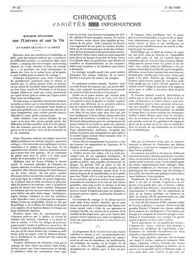 1926, Articles originaux. -