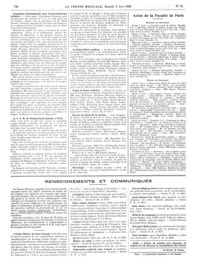 1926, Articles originaux. -